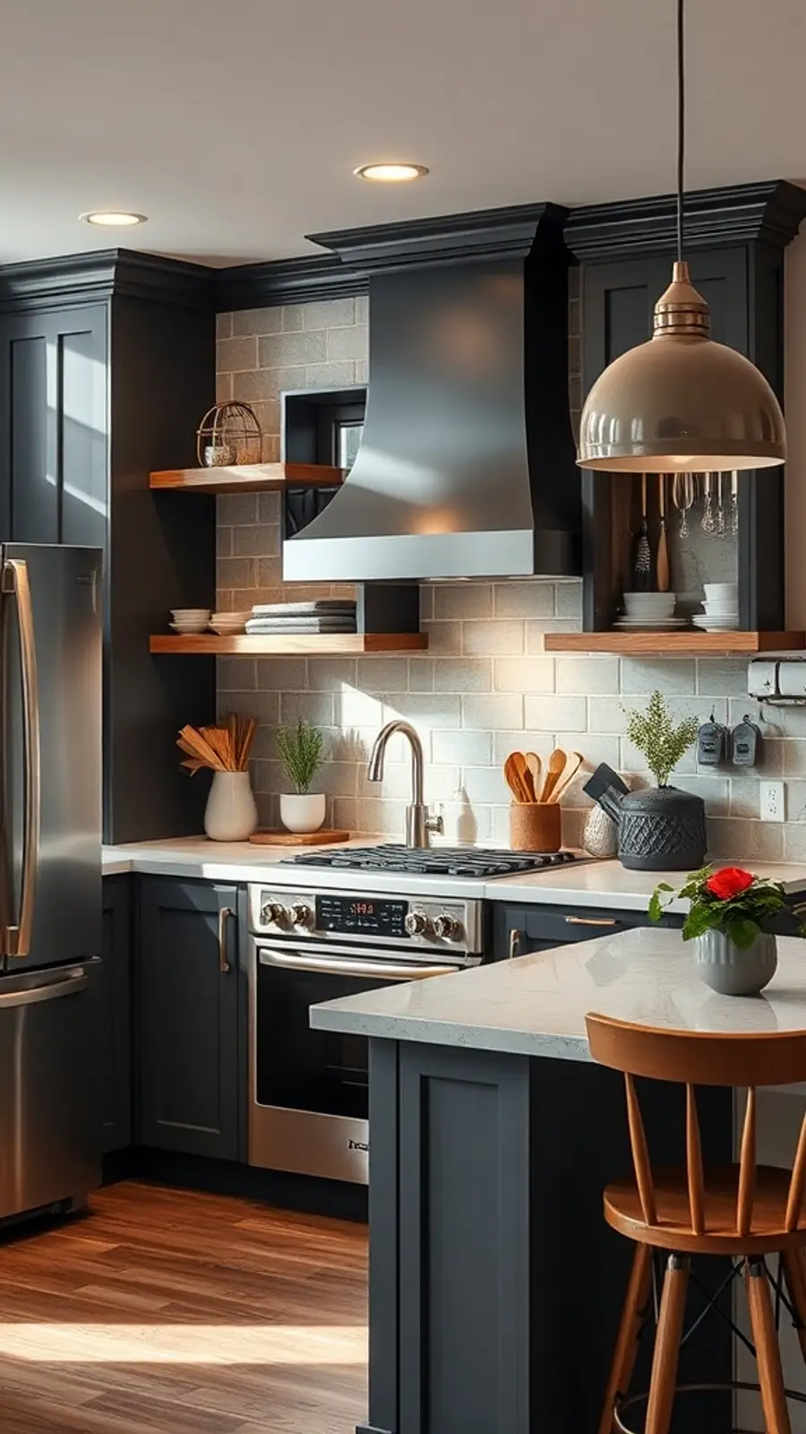 Open shelving can display your favorite dishes or cookbooks, adding both utility and charm.